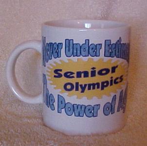 Senior Olympics "Never Underestimate The Power Of Age" Coffee Mug 11 oz. mug, dishwasher and microwave safe. $11.95