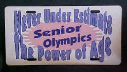 Senior Olympics Novelty License Plate License Plates are standard size 6"x12" w/mounting slots on top and bottom $12.50