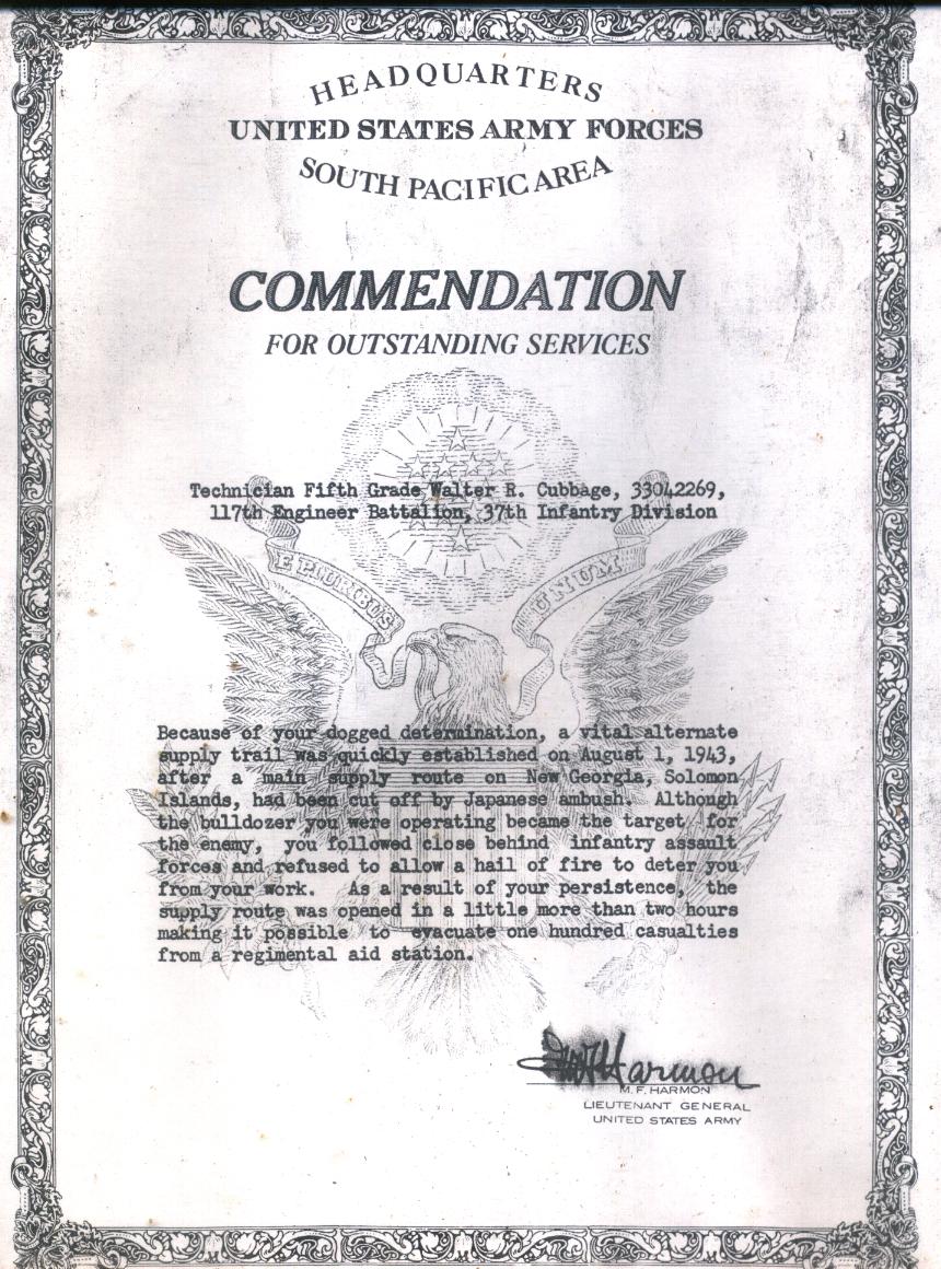 Commendation for Outstanding Service While Overseas